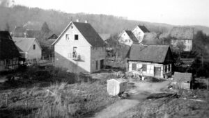 In den 60er Jahren des letzten Jahrhunderts verkauften meine Eltern einen Bauplatz, der den “Hühnergarten” und Obstgarten mit “Bienenhütte” bis zur Kirchstraße verlängert hatte. Es war das Eckgrundstück Bahnhofstr./Kirchstr., das als Anhängsel an unserem Grundstück noch in der Bebauungsstruktur der Kirchstraße gefehlt hatte. Wir hatten – wie damals üblich – damit nicht nur Obstbäume beim Haus zur Verfügung, sondern konnten in diesem großen Hühnergarten auch während der Stallreinigung den beiden Schweinen im Grünen Auslauf bieten. Außerdem befand sich dort auch das Abraumlager mit den Trümmerresten des am 10.09.1944 zerbombten und abgebrannten Wohnhauses und das Holzlager als Anhängeschuppen am Wohnhaus Kirchstraße 10. Vor dem Verkauf wurde dieses Holzlager (offener Balkenschuppen mit Schleppdach) an die westliche Seite des Wohnhauses angehängt. Als schon während der 60er Jahre die Holzvorräte im Zuge des Niedergangs des Wagnerberufes kleiner wurden und 1970 das Wohnhaus vergrößert wurde, verschwand dieser Holzlagerschuppen. Die restlichen Holzvorräte wurden im Schuppen hinter der Werkstatt und unter der großen Terrasse des Wohnhauses gelagert, wo sie sich noch heute befinden.
